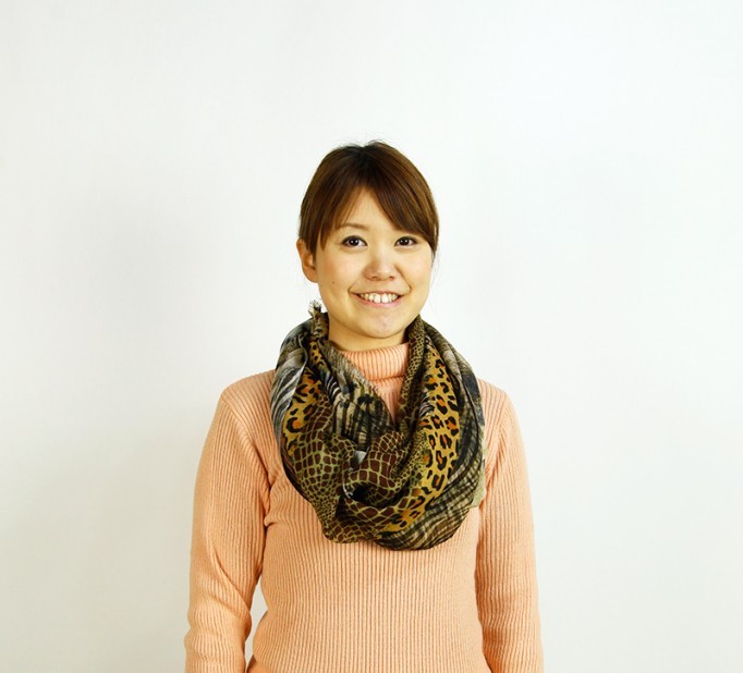 まるでスヌードのようなボリュームを出し、視線を上半身に集めるスヌード巻きの方法