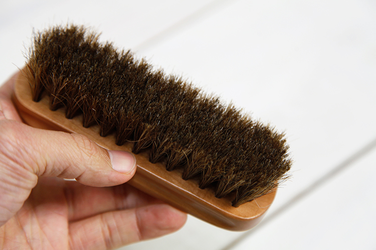 着用後にはやわらかい天然素材のブラシを使って毛足方向にブラッシングをします。