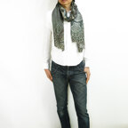 生地感よりカジュアルな普段使いにも、少しフォーマルなシーンでも使いやすいタイプです。スタイルや場所を問わず合わせることができる優れたストールです。