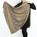 全ての工程を手作業で行われるカシミール産カシミヤストールは大量生産することのできない「一点もの」であり、希少価値の非常に高いものです。不透明なブランドによって付加された価値ではなく、優れた機能性、品質に裏打ちされた真の価値があります。特にサイズの大きなショールサイズに施されるニードル刺繍のデザインの美しさ、刺繍の繊細さと緻密さは、まさに芸術レベルであり、一般的なカシミール手刺繍のレベルをはるかに超えています。本物志向の方には最高の一枚になるはずです。