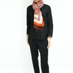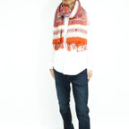 スタンダードな大判サイズで、首に巻くことはもちろん、室内でのひざ掛けにも、肩から羽織る使い方もできます。特に羽織りは、パッと華やかにエレガントな雰囲気に変わります。上半身を覆えるので、着ている服を気にせず合わせることができます。忙しい朝もコーディネートを気にする必要はありません。