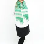 スタンダードな大判サイズで、首に巻くことはもちろん、室内でのひざ掛けにも、肩から羽織る使い方もできます。特に羽織りは、パッと華やかにエレガントな雰囲気に変わります。上半身を覆えるので、着ている服を気にせず合わせることができます。忙しい朝もコーディネートを気にする必要はありません。