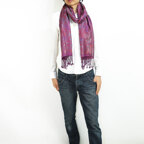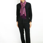 スタンダートな大判サイズで巻いても羽織っても、どちらも使いやすいタイプです。特に羽織は全体の印象がパッと華やかに、エレガントな雰囲気に変化します。