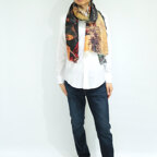 非常に大きなショールサイズで、広げて羽織れば上半身をすっぽりと覆うことができます。縦横の長さも十分にあるため、巻き方の自由度が広がります。程よいボリューム感と立体感を簡単につくることができるため、一巻きでこなれた印象になります。面積もあるので、真夏の室内での冷房対策や膝掛けとしても使いやすくなっています。