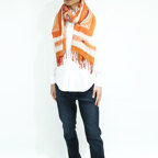 スタンダードな大判サイズで、首に巻くことはもちろん、室内でのひざ掛けにも、肩から羽織る使い方もできます。特に羽織りは、パッと華やかにエレガントな雰囲気に変わります。上半身を覆えるので、着ている服を気にせず合わせることができます。忙しい朝もコーディネートを気にする必要はありません。