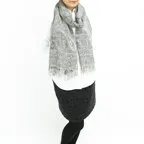 スタンダードな大判サイズで、首に巻くことはもちろん、室内でのひざ掛けにも、肩から羽織る使い方もできます。特に羽織りは、パッと華やかにエレガントな雰囲気に変わります。上半身を覆えるので、着ている服を気にせず合わせることができます。忙しい朝もコーディネートを気にする必要はありません。
