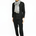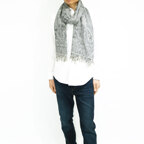 スタンダードな大判サイズで、首に巻くことはもちろん、室内でのひざ掛けにも、肩から羽織る使い方もできます。特に羽織りは、パッと華やかにエレガントな雰囲気に変わります。上半身を覆えるので、着ている服を気にせず合わせることができます。忙しい朝もコーディネートを気にする必要はありません。