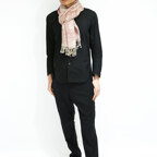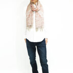 スタンダードな大判サイズで、首に巻くことはもちろん、室内でのひざ掛けにも、肩から羽織る使い方もできます。特に羽織りは、パッと華やかにエレガントな雰囲気に変わります。上半身を覆えるので、着ている服を気にせず合わせることができます。忙しい朝もコーディネートを気にする必要はありません。