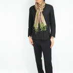 スタンダートな大判サイズで巻いても羽織っても、どちらも使いやすいタイプです。特に羽織は全体の印象がパッと華やかに、エレガントな雰囲気に変化します。