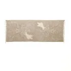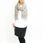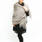 スタンダードな大判サイズで、首に巻くことはもちろん、室内でのひざ掛けにも、肩から羽織る使い方もできます。特に羽織りは、パッと華やかにエレガントな雰囲気に変わります。上半身を覆えるので、着ている服を気にせず合わせることができます。忙しい朝もコーディネートを気にする必要はありません。