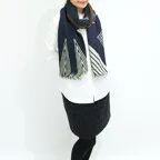 非常に大きなショールサイズで、広げて羽織れば上半身をすっぽりと覆うことができます。縦横の長さも十分にあるため、巻き方の自由度が広がります。程よいボリューム感と立体感を簡単につくることができるため、一巻きでこなれた印象になります。面積もあるので、真夏の室内での冷房対策や膝掛けとしても使いやすくなっています。
