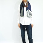 非常に大きなショールサイズで、広げて羽織れば上半身をすっぽりと覆うことができます。縦横の長さも十分にあるため、巻き方の自由度が広がります。程よいボリューム感と立体感を簡単につくることができるため、一巻きでこなれた印象になります。面積もあるので、真夏の室内での冷房対策や膝掛けとしても使いやすくなっています。