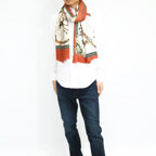 柄が個性的なぶん、色数を絞った絶妙な引き算で、着こなしやすいモダンな一枚に仕上げたストール。肌触りも優しく、とても快適に身につけることができます!