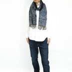 スタンダードな大判サイズで、首に巻くことはもちろん、室内でのひざ掛けにも、肩から羽織る使い方もできます。特に羽織りは、パッと華やかにエレガントな雰囲気に変わります。上半身を覆えるので、着ている服を気にせず合わせることができます。忙しい朝もコーディネートを気にする必要はありません。