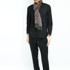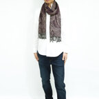 スタンダードな大判サイズで、首に巻くことはもちろん、室内でのひざ掛けにも、肩から羽織る使い方もできます。特に羽織りは、パッと華やかにエレガントな雰囲気に変わります。上半身を覆えるので、着ている服を気にせず合わせることができます。忙しい朝もコーディネートを気にする必要はありません。