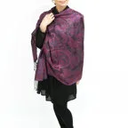 スタンダートな大判サイズで巻いても羽織っても、どちらも使いやすいタイプです。特に羽織は全体の印象がパッと華やかに、エレガントな雰囲気に変化します。