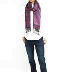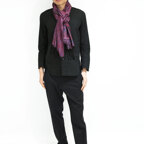 スタンダートな大判サイズで巻いても羽織っても、どちらも使いやすいタイプです。特に羽織は全体の印象がパッと華やかに、エレガントな雰囲気に変化します。