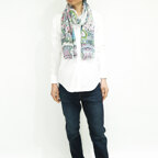 スタンダードな大判サイズで巻きでも羽織でもどちらでも使いやすくなっています。特に春夏の日除けや冷房対策としても使いやすく、ファッションのアクセントとしてなら一年中使うことができます。