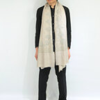 このカシミアストールには最も繊細なインドカシミール地方ラダック産カシミア糸(パシュミナ)が使われています。そのため手織りカシミアストールの中でも最も目が細く繊細な生地となっています。薄くて軽くてやわらかい最上級の一枚です。