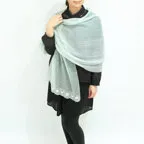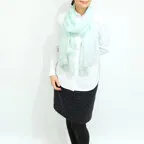 スタンダードな大判サイズと軽やかな質感で、巻きだけでなく羽織でも合わせやすいタイプです。トップスがほのかに透けて見え、上品な印象を与えてくれます。
