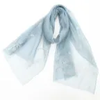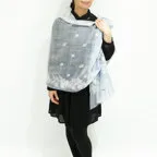 スタンダードな大判サイズと軽やかな質感で、巻きだけでなく羽織でも合わせやすいタイプです。トップスがほのかに透けて見え、上品な印象を与えてくれます。