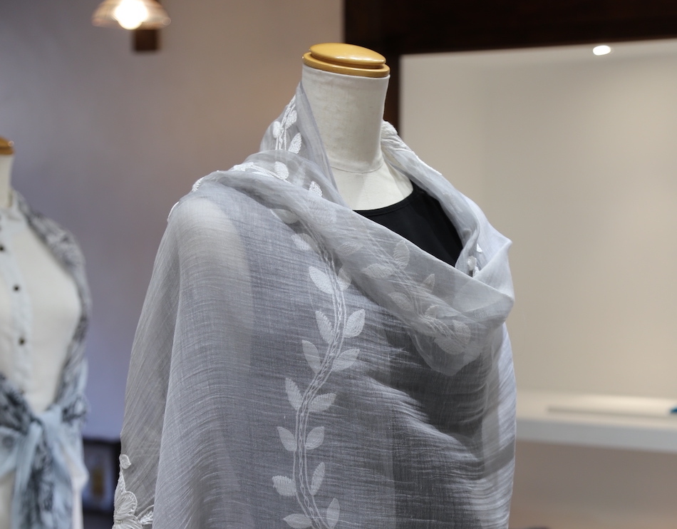 生産地はインド・バナラシ。木製の織り機を用い、丁寧に織り込むことで薄くて軽いストレスフリーの質感が実現しています。