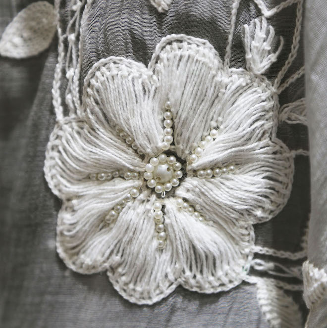 ステッチ刺繍にはビーズを使用しています。