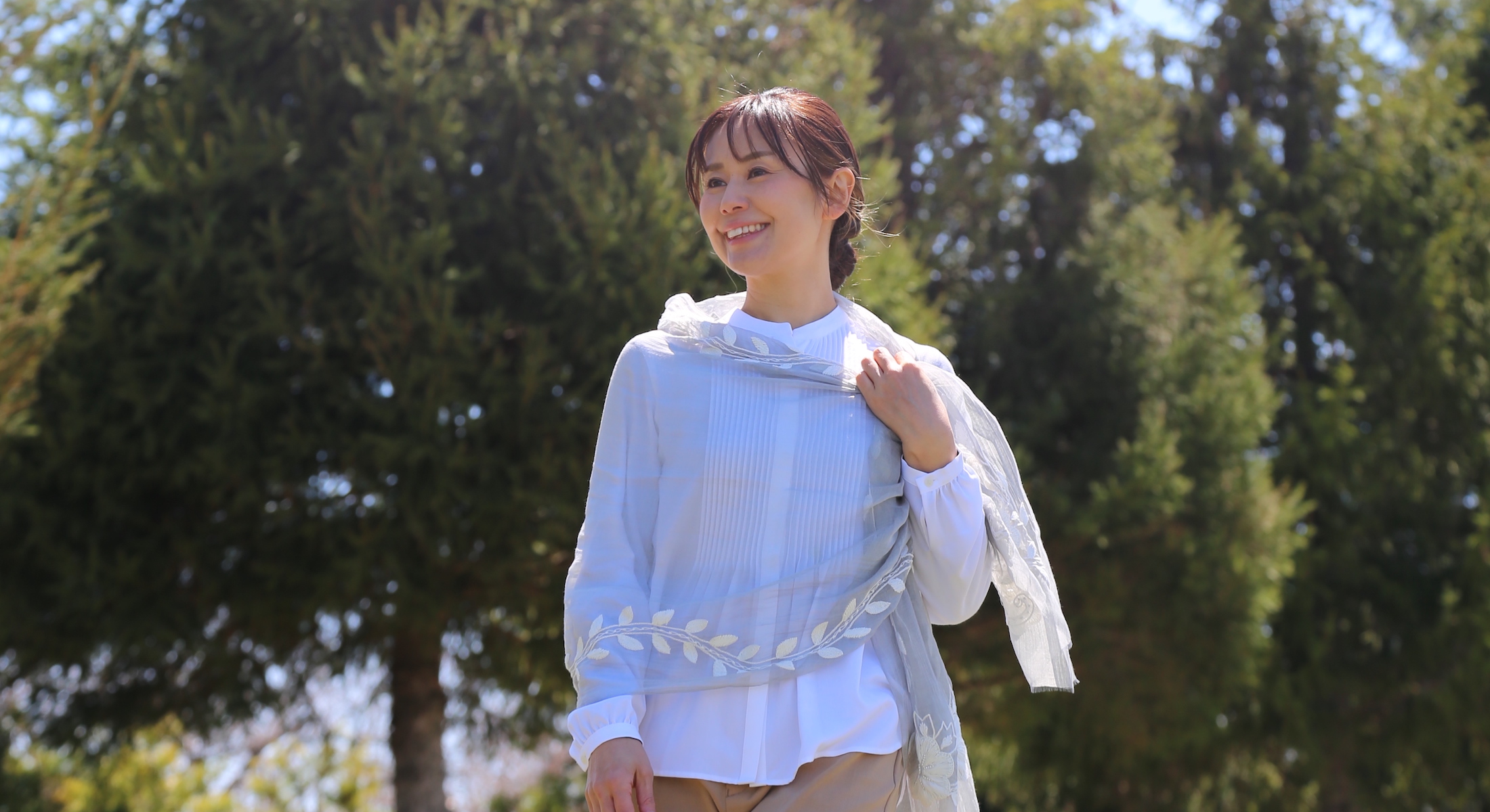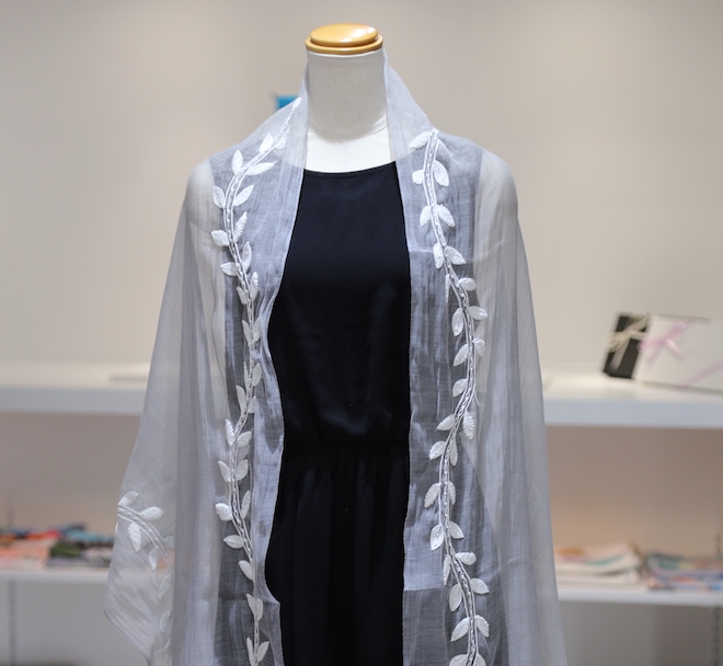 木漏れ日のようにやわらかな透明感が、肌をふんわりと包みます。身につけていて肩がこることもありません。