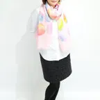大判サイズのストールで肩から羽織る使い方もできます。春夏の日除けや室内の冷房対策としても使いやすくなっています。