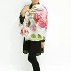 スタンダードな大判サイズで巻きでも羽織でもどちらでも使いやすくなっています。特に春夏の日除けや冷房対策としても使いやすく、ファッションのアクセントとしてなら一年中使うことができます。