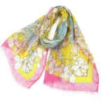 一緒にいる人に華やかさをプレゼントするような、カラフル色使いが印象的なデザイン。着こなしに花を咲かせるリネンストールです!