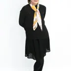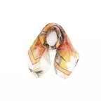 小ぶりなスクエアサイズで、アスコットタイのようにシャツやブラウスの中におさめて使うこともできます。室内でも巻いたままでいられるので使いやすくなっています。