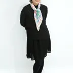 小ぶりなスクエアサイズで、アスコットタイのようにシャツやブラウスの中におさめて使うこともできます。室内でも巻いたままでいられるので使いやすくなっています。