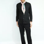 小ぶりなスクエアサイズで、アスコットタイのようにシャツやブラウスの中におさめて使うこともできます。室内でも巻いたままでいられるので使いやすくなっています。