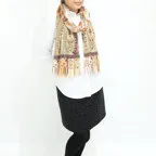 スタンダードな大判サイズで巻きでも羽織でもどちらでも使いやすくなっています。特に春夏の日除けや冷房対策としても使いやすく、ファッションのアクセントとしてなら一年中使うことができます。
