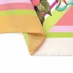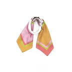90cm×90cmの正方形サイズで小さくまとります。折りたためばサッとバッグに入れて持ち運べます。外出先でも邪魔になることはありません。また、身につけるだけでなく、手持ちのバッグにキュッと結べるアクセサリーとしても重宝します。