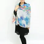 大判サイズのストールで肩から羽織る使い方もできます。春夏の日除けや室内の冷房対策としても使いやすくなっています。