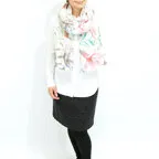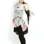 大判サイズのストールで肩から羽織る使い方もできます。春夏の日除けや室内の冷房対策としても使いやすくなっています。