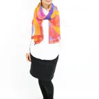 バランスの良いミドルサイズで巻きだけでなく羽織でも合わせやすいタイプ。程よい弾力性もありシワもつきにくいストールです。シワを気にすることなく、使いたい時にすぐに使うことができます。