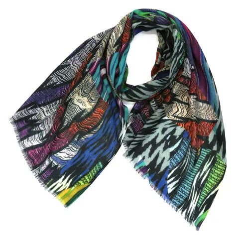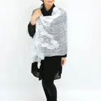 また、バランスの良い大判サイズで肩から羽織る使い方にも適しています。上半身をすっぽりと覆うことができるので纏うだけで印象を大きく変えてくれます。