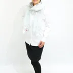 リネンシルク生地は肌にやさしく、デリケートな首周りでもチクチクせずとってもやわらかです。適度なハリあり、サラッとした爽やかな涼感があります。熱の伝わるスピードも早く、外に熱を発散してくれます。いつでもどこでもストレスフリーの着け心地です。
