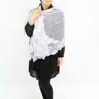 また、バランスの良い大判サイズで肩から羽織る使い方にも適しています。上半身をすっぽりと覆うことができるので纏うだけで印象を大きく変えてくれます。