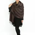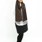 スタンダートな大判サイズで巻いても羽織っても、どちらも使いやすいタイプです。特に羽織は全体の印象がパッと華やかに、エレガントな雰囲気に変化します。