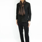 シルク100%の品の良い光沢感と美しいドレープが相まって、フォーマルな場面やパーティーシーンで大活躍します。シャツやブラウス、ドレスやスーツ、ジャケットなどのトップスと相性が抜群で、一巻きでいつものファッションを格上げできます。