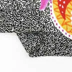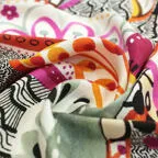 90cm×90cmの正方形サイズで小さくまとります。折りたためばサッとバッグに入れて持ち運べます。外出先でも邪魔になることはありません。また、身につけるだけでなく、手持ちのバッグにキュッと結べるアクセサリーとしても重宝します。