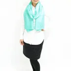 スタンダードな大判サイズで巻きでも羽織でもどちらも使いやすいストールです。特に羽織はパッと全体の印象を大きく変えることができます。