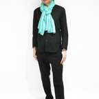 スタンダードな大判サイズで巻きでも羽織でもどちらも使いやすいストールです。特に羽織はパッと全体の印象を大きく変えることができます。
