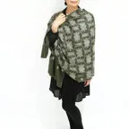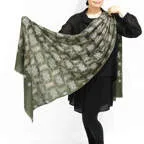 バランスの良い大判サイズで、巻きでも羽織でもどちらも使いやすいストールです。特に羽織は全面に施された刺繍が美しく輝き、サッとあしらうだけでゴージャスな雰囲気に変化します。