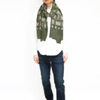 バランスの良い大判サイズで、巻きでも羽織でもどちらも使いやすいストールです。特に羽織は全面に施された刺繍が美しく輝き、サッとあしらうだけでゴージャスな雰囲気に変化します。