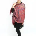 スタンダートな大判サイズで巻いても羽織っても、どちらも使いやすいタイプです。特に羽織は全体の印象がパッと華やかに、エレガントな雰囲気に変化します。